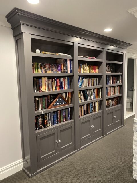 The shelving unit’s camouflage is especially compelling as it appears to be a free-standing piece of furniture. This configuration also enables an extra-wide clear opening.